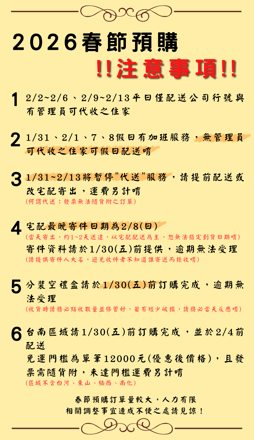 ❈ 不同通路處理方式&人員皆不同,請統一一個通路訂購商品或追加,避免處理時間差而造成訂單內容或金額有誤差! (113.11.12公告)